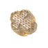 Anel Cruz Master em banho ouro com design geométrico sofisticado. Apresenta zircônias em corte baguete dispostas estrategicamente no centro, complementadas por pedras circulares que contornam toda a peça. A combinação de lapidações cria profundidade visual e brilho intenso. O banho ouro confere acabamento luxuoso e durável. Ideal para quem busca uma joia com presença marcante e elegância contemporânea. Peça versátil que transita entre ocasiões formais e uso cotidiano sofisticado.
