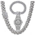 Kit Cuban Cravejado - Corrente + Pulseira + Relógio (Banho Prata)